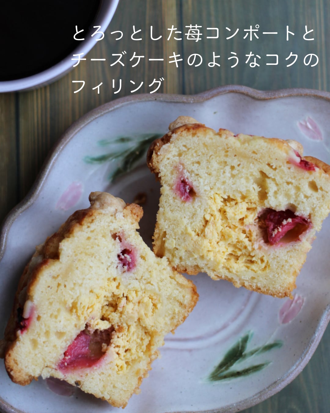 コンポートにした苺と、クリームチーズフィリングを合わせたマフィンです。
